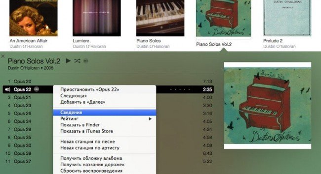 2. Тепер необхідно встановити уривок пісні, який вам дійсно сподобався. Потрібно пам’ятати, що мелодія виклику не може перевищувати тридцяти секунд по тривалості, отже, перевіряємо правильність власного вибору. Щоб виконати маніпуляцію, потрібно на виділену композицію натиснути правою кнопкою миші, і перейти до пункту «Відомості» – «Параметри». Саме це меню відповідає за те, щоб самостійно встановити тривалість необхідного відрізка пісні.