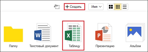 На основі даної мережевої версії Майкрософт Офіс працюють сервіси по роботі з таблицями Яндекса і Мейл.Ру. Приміром, на сайті ” Яндекс.Ру потрібно перейти в Яндекс. Диск, там натиснути на «Создать» та вибрати «Таблицю».