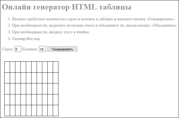 Також у мережі представлено низку сайтів, що дозволяють створювати таблиці html онлайн. Для цього досить визначитися з рядом базових налаштувань, згенерувати таблицю, скопіювати отриманий html код на сайт, і отримати шуканий результат.