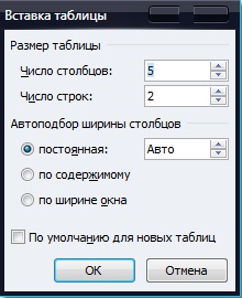 Вставити таблицю – дає змогу ввести необхідну кількість стовпців і рядків, що вам необхідно для вашої таблиці. Також ви можете налаштувати ширину стовпців.