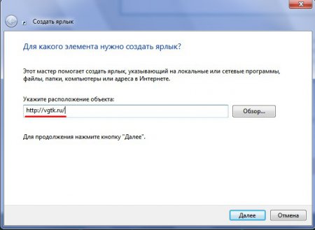 Раніше на сайті ми вже описували процес створення ярликів програм на Робочому столі. Зараз нам необхідно зробити теж саме, тільки в графу “Вкажіть місце розташування об’єкта” необхідно ввести не шлях до програми, а url-адресу сайту.