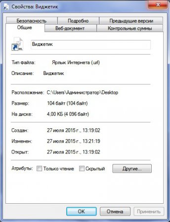 Новостворений ярлик сайту на Робочому столі буде мати такі властивості.