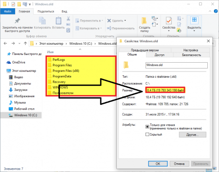 Розмір такої папки може бути навіть дуже великих обсягів, в залежності від того, яка кількість програм було встановлено у попередньої операційної системі.