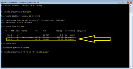 Видаляємо папку Windows.old з командного рядка при завантаженні системи