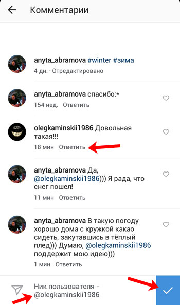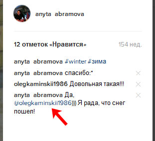 Але якщо Ви не хочете відповісти, а саме згадати людини в описі до фото або у коментарі, тоді напишіть в тексті @ нік. Давайте на прикладах розглянемо, як це зробити.