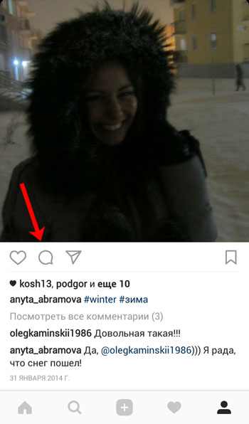 Для того щоб відзначити людини в коментарях з телефону або планшета, відкрийте мобільний додаток Instagram, знайдіть фото і натисніть на нього.