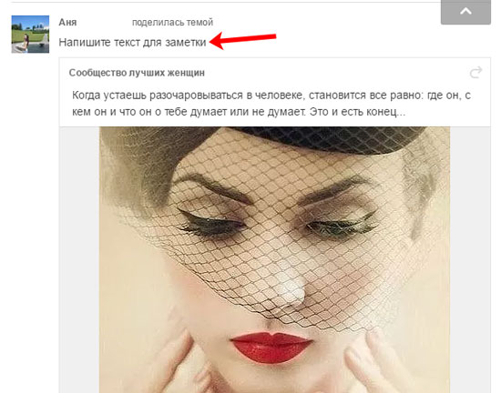 В даному випадку, потрібно просто під цікавою заміткою натиснути на кнопочку у вигляді стрілочки «Поділитися».