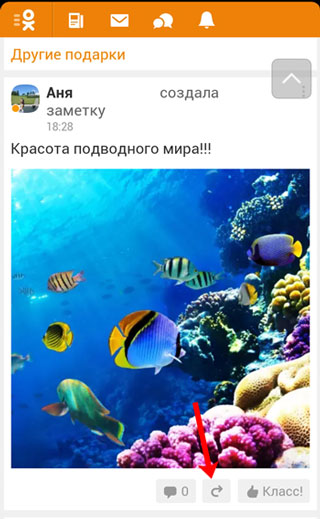 - 3 Як поділитися заміткою в Однокласниках з телефону