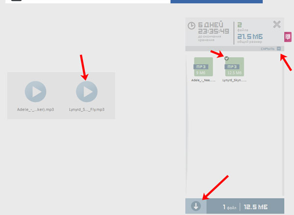 На сторінці файлообмінника у нього буде можливість послухати музику, і завантажити всю відразу або виділити кілька пісень і завантажити тільки їх.
