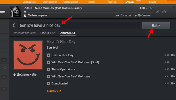 Потім в рядок пошуку введіть назву тієї пісні, яку ви хочете відправити повідомлення, і натисніть кнопку «Знайти».