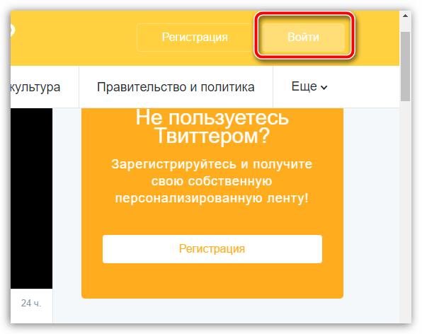 • Перейдіть в будь-якому браузері на головну сторінку Twitter і, при необхідності, в останній раз виконайте авторизацію на сайті сервісу.