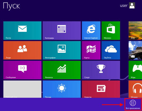 - Якщо на пристрої стоїть система Windows 8, то все зробити ще простіше. Потрібно просто відкрити список з назвою «Всі програми», який розташований на початковому екрані.