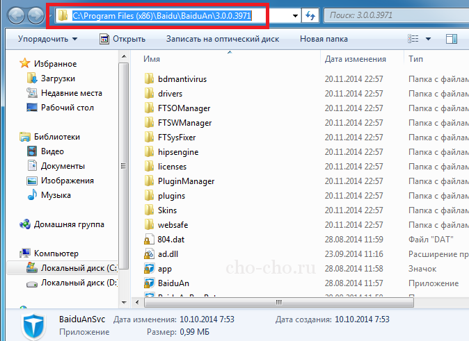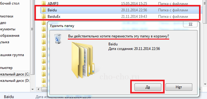 Важливо! Якщо файл Baidu буде в системній папці, то видаляти повністю її не потрібно, тільки сам файл