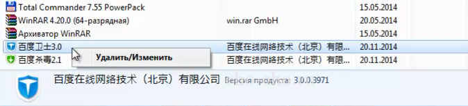 Що ж, ось начебто все маніпуляції і описані, я сподіваюся, що тепер ви з легкістю зможете відповісти на питання «Як видалити китайський антивірус baidu?».