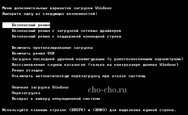 Швидше за все, якісь програми Baidu ні в яку не захочуть видалятися. Якщо так і сталося, то перезавантажуємо Windows. При наступному завантаженні наполегливо натискаємо клавішу F8, щоб викликати меню вибору режиму. Вибираємо безпечний режим.