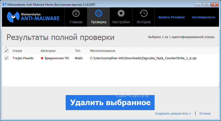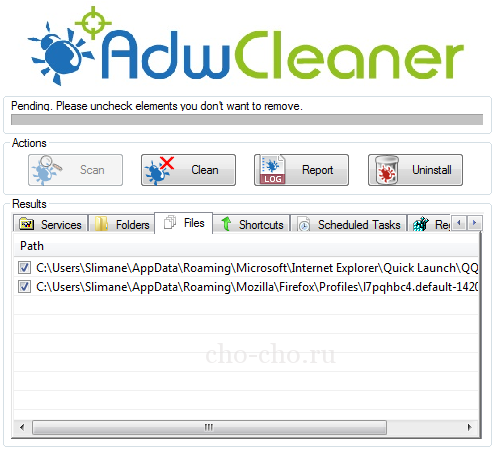 Наступний пункт — перевірте ПК за допомогою програми AdwCleaner. Видаліть всі файли і підозрілі об’єкти, які запропонує утиліта.