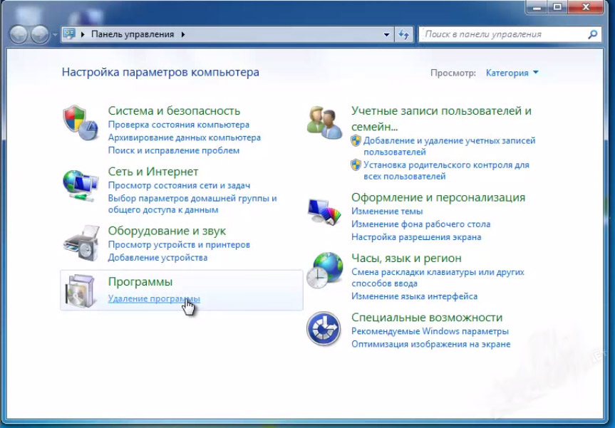 - В Панелі управління необхідно перейти до підрозділу «Програми та компоненти».