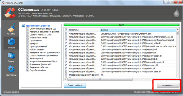 Для вірності можна виконати очищення реєстру з допомогою спеціальних утиліт, наприклад, CCleaner. Програмка скачується безкоштовно з офіційного сайту. Не бажано виконувати ручне очищення реєстру, тому що невмілі дії можуть призвести до того, що будуть видалені важливі системні файли. Це може призвести до збоїв у системі і буде потрібно повна переустановка.