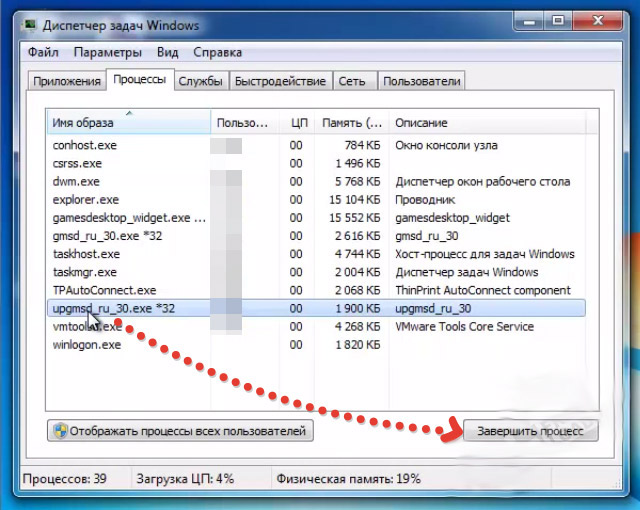 - Крім цього, шукаємо ще процеси, які можуть мати в назві «gmsd_ru_30». Їх, швидше за все, буде два, але може бути і більше. Аналогічно завершуємо їх роботу.