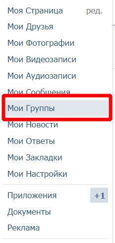 - Необхідно зайти в список своїх громад через посилання «Мої групи» і знайти паблік, який потрібно видалити.