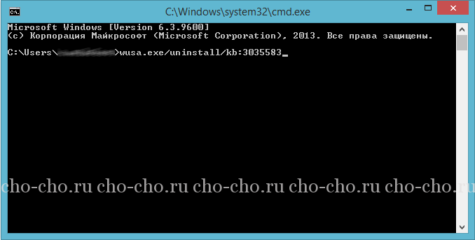 - Ви також можете відключити і знищити значок GWX.EXE. Щоб це здійснити, необхідно в командному рядку набрати ( wusa.exe/uninstall/kb:3035583).