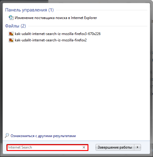 - На робочому столі тиснемо кнопку «Пуск», потім відкриваємо пошук і перевіряємо свій комп’ютер за запитом Internet Search. Все що вам видасть пошукова система, необхідно буде видалити.