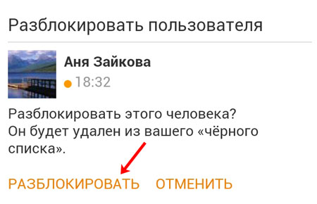 Прибираємо людини з чорного списку в Однокласниках з телефону