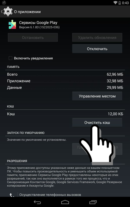 Цей метод застосовується в тих випадках, коли не вдається видалити обліковий запис першим методом. Для виконання даної процедури, вибираємо пункт «Налаштування», потім відкриваємо «Додатки». Після цього нам слід вибрати все. Для того щоб остаточно видалити клацаємо «Сервіси Гугл», а після натискаємо на іконку «Очистити дані».
