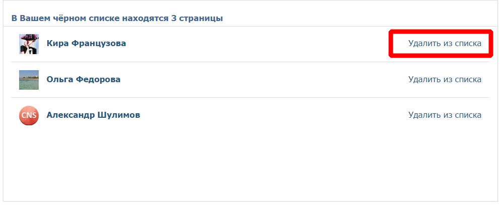 Навпроти імені віддаленого людини натискаємо на посилання «Видалити зі списку». Оновлюємо сторінку.