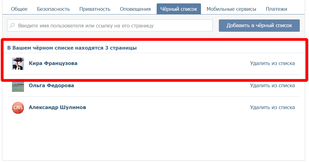 Вибираємо вкладку «Чорний список».