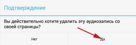 Нас запитують, а чи справді ми хочемо видалити дану аудіозапис зі своєї сторінки. Ми погоджуємося і натискаємо на кнопку «Так».