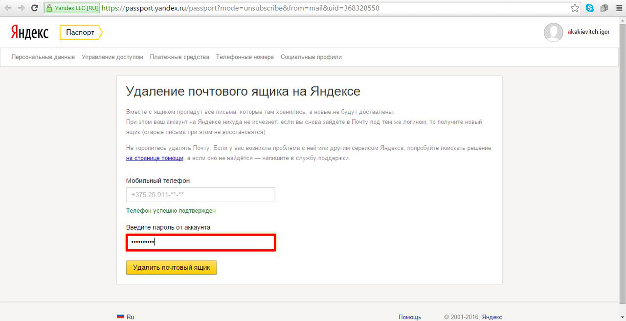 Можна перевірити – чи дійсно пошта видалена. Для цього знову відкриваємо пошуковик Яндекс і намагаємося увійти в поштовий сервіс, використовуючи свої особисті логін та пароль. Якщо з’явилося повідомлення, що свідчить про те, що введена неправильна пара логін з паролем, і авторизуватися в системі не вдалося, то можна з упевненістю заявити, що поштовий ящик точно видалено. З допомогою таких нескладних дій легко вирішується проблема: «Як видалити скриньку на Яндексі?» Якщо в доповнення хочеться видалити обліковий запис у системі Яндекс, то досить на особистій сторінці перейти в «Налаштування», а потім пункт «Персональні дані».