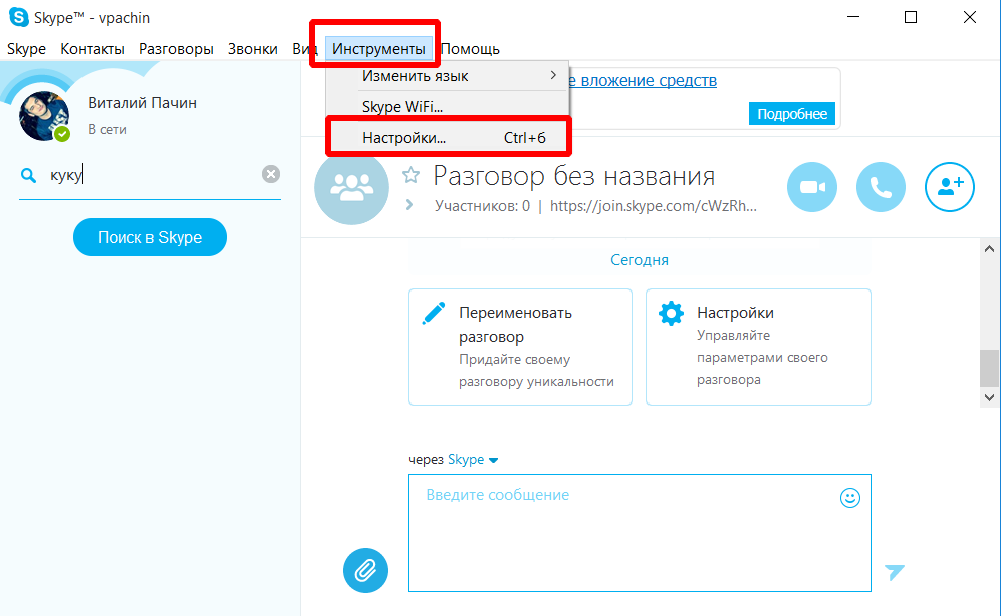 - Заходите в свій профіль в Скайпі, використовуючи дані для доступу (пароль, логін).