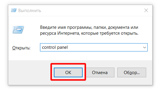 - Тепер переходимо у вікно Панелі керування. Для цього можна скористатися меню «Пуск» або командою control panel, прописаної у вікні «Виконати» (викликається кнопками Win+R).