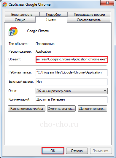 • натискаємо правою кнопкою миші на ярлик вашого браузера, шукаємо «Властивості», дивимося, не змінювався шлях до файлу; наявність посилання на ресурс «Вулкану» — симптом, що ПК «заражений»;