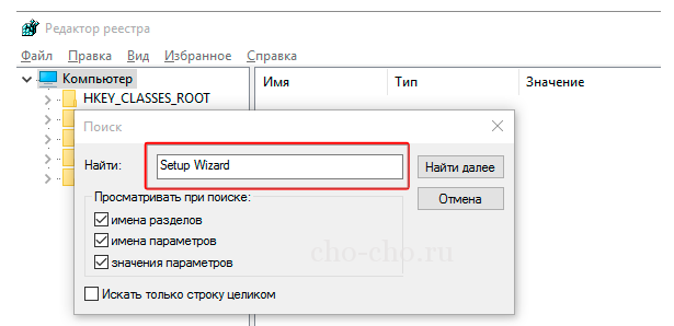 У рядку «Виконати» (Windows+R) у пункті за «Видалення або змінення програм» знаходимо ці програми, серед них – все, що з розширенням Setup Wizard. Прибираємо все. Повернувшись в «Виконати», пишем regedit і у вікні редактора реєстру натискаємо ctrl+F, вводимо «Setup Wizard».