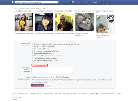 Перед вами відкривається маленька анкетка, в якій просять вказати причину видалення сторінки. Радимо вам поставити «Інші». Якщо блокуєте назавжди, поставте галочку Відмову від електронних листів. І натискаємо Деактивувати.