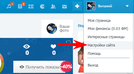 - Потім, після вдалого входу, вгорі сторінки можна буде побачити кнопку з зображенням шестерні. Тиснемо на неї і потрапляємо на сторінку з налаштуваннями.