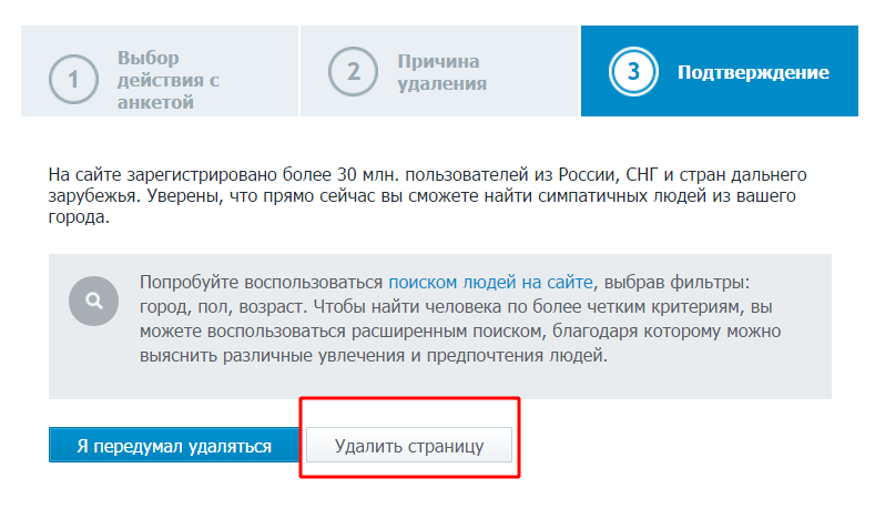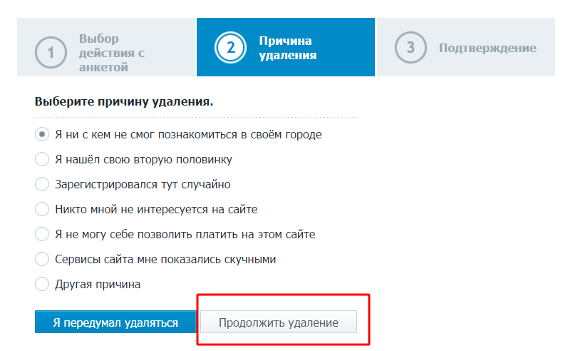 - Далі, проставляємо відмітку напроти пункту про повному видаленні анкети з сайту.