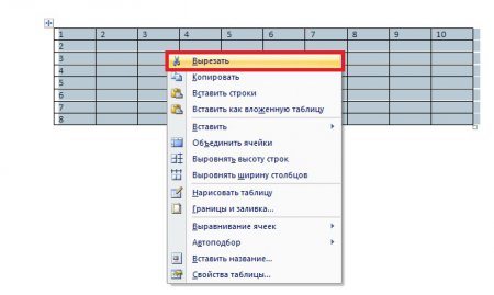 Натискаємо праву кнопку миші в будь-яку область таблиці. У контекстному меню натискаємо «Вирізати» (Ctrl+X)