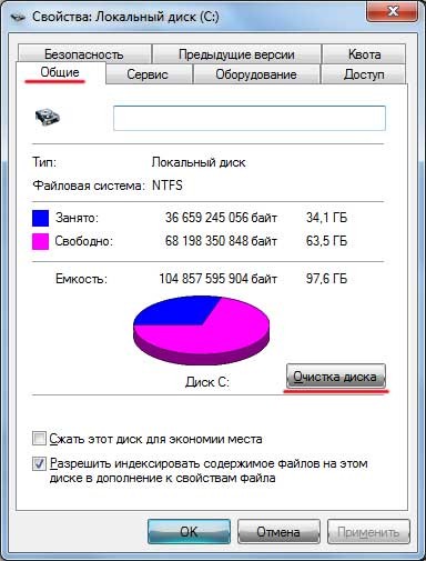 - На вкладці «Общие слід натиснути іконку «Очищення».