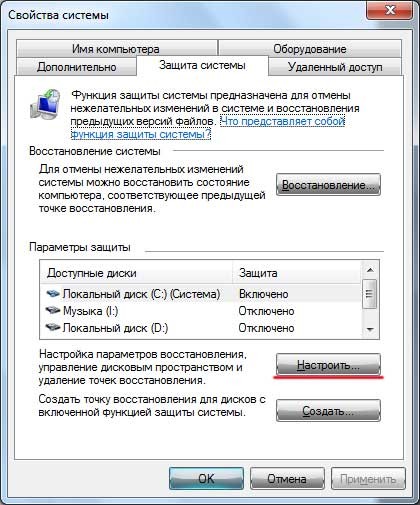 - Вам слід в полі «Параметри захисту» вибрати необхідний вам системний диск, а після натиснути на іконку «Налаштувати».