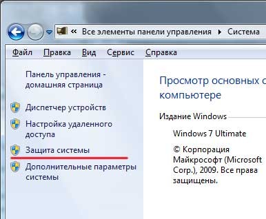 - В лівій частині панелі перед вами буде пункт «Захист системи», нам необхідно буде відкрити його.
