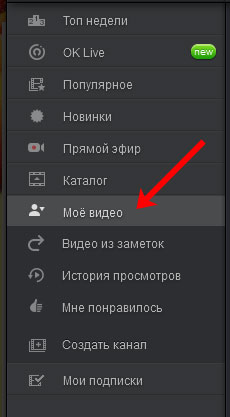 Тепер у списку ліворуч виберіть пункт «Моє відео» і клацніть по ньому. Розгорнеться невелике підменю.
