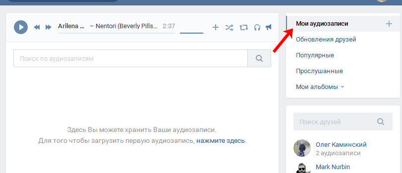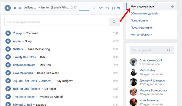 Як бачите на моїй сторінці в меню «Мої аудіозаписи» є список з піснями, зараз будемо його видаляти.