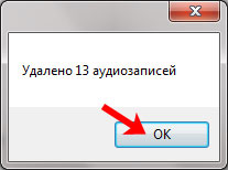 Відкриється наступне вікно. Натисніть на кнопочку «Видалити всі аудіозаписи».