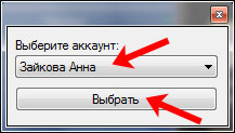 Якщо у Вас додано в програму кілька акаунтів, виберіть зі списку потрібний і натисніть «Вибрати».
