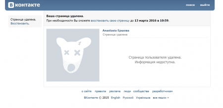 Все ваша сторінка видалена. Також ви можете відновити назад натиснувши «Відновити»