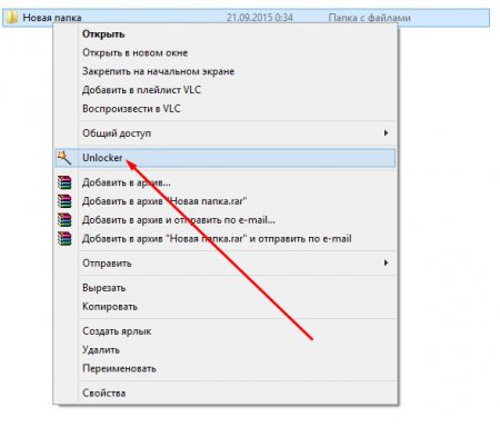 Для початку вам необхідно натиснути правою кнопкою миші на необхідну папку або файл. Потім у контекстному меню вибрати команду «Unlocker». Ви легко знайдете її по характерному ярличку.