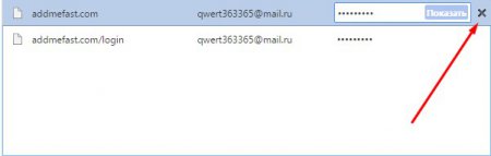 6. А ось, щоб видалити збережений пароль вам необхідно натиснути на хрестик, який знаходиться відразу за кнопкою “Показати“. При натисканні на нього дані будуть автоматично видалені.